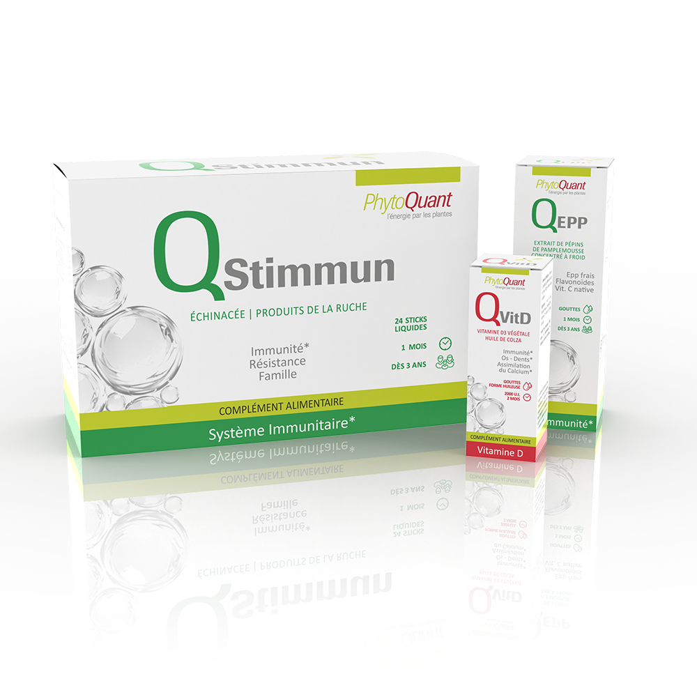 Cette cure associe les bienfaits de QuantaVitD, QuantaStimmun et QuantaEPP pour une protection renforcée :